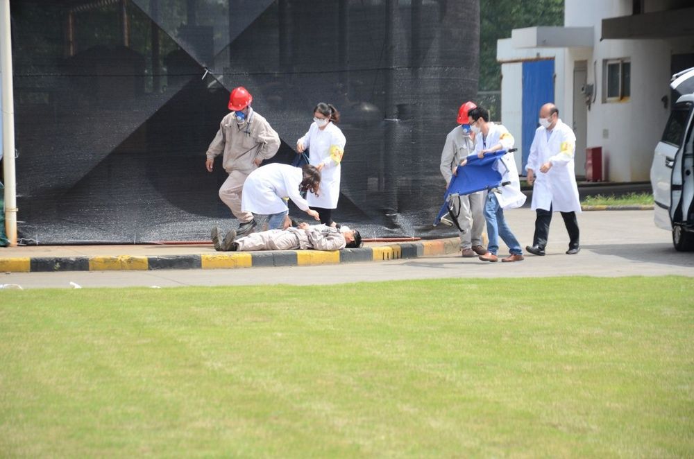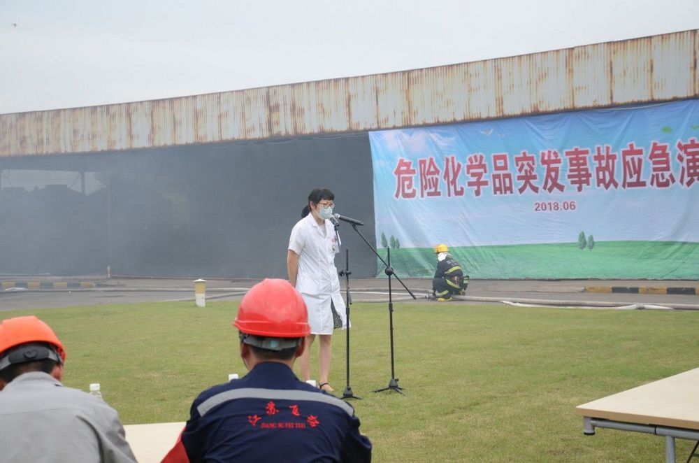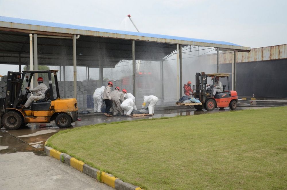 公司启动应急预案后,防化抢险组第一个冲到现场