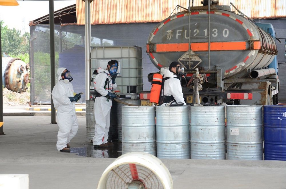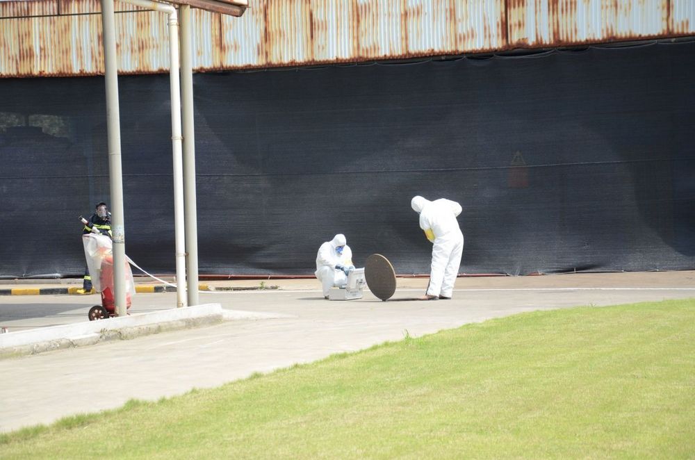 环境应急组的人员迅速要换阀门,让事故水流入事故应急池
